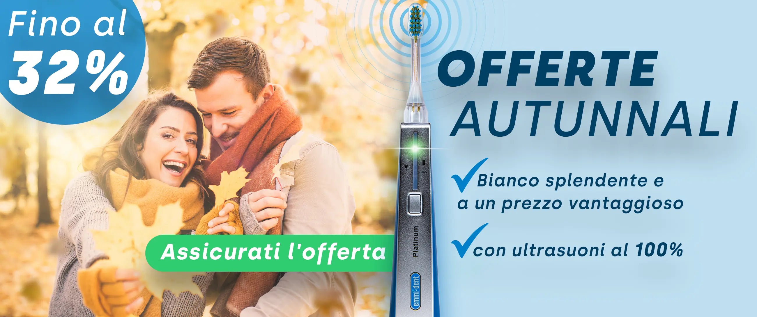 Prova la rivoluzione nell'igiene dentale con lo spazzolino ultrasonico di emmi-dent. Oltre allo spazzolino vero e proprio, riceverete anche accessori adatti, come testine di ricambio e uno speciale dentifricio a ultrasuoni. Offriamo pacchetti interessanti che ti aiuteranno a risparmiare, oltre alla spedizione gratuita entro 1-3 giorni. La tua salute dentale è la nostra missione: affidati a tecnologie innovative e alla massima qualità per un sorriso radioso.