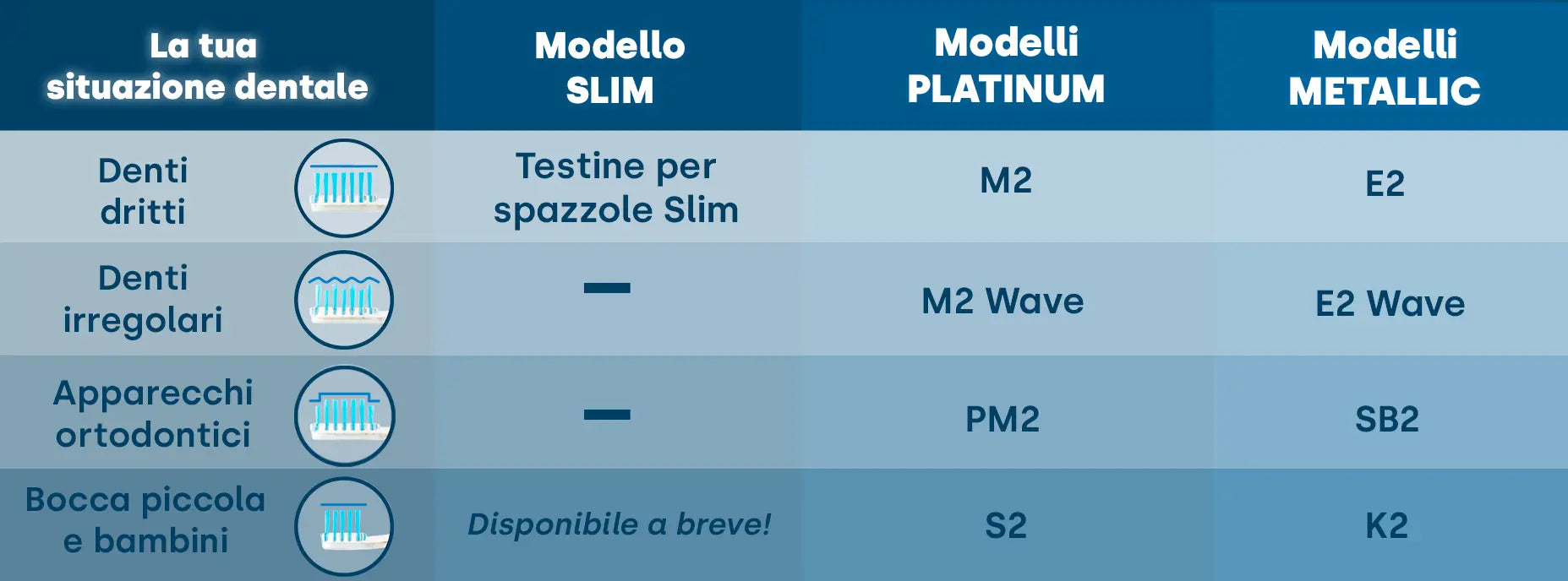 Per i modelli Platinum sono necessarie le nostre testine a 4 pin, come i modelli M2, M2 Wave, S2 e PM2. Gli utenti dei modelli Metallic , GO o Professional dovrebbero scegliere le testine a 2 pin come E2, E2 Wave, SB2 o K2.
