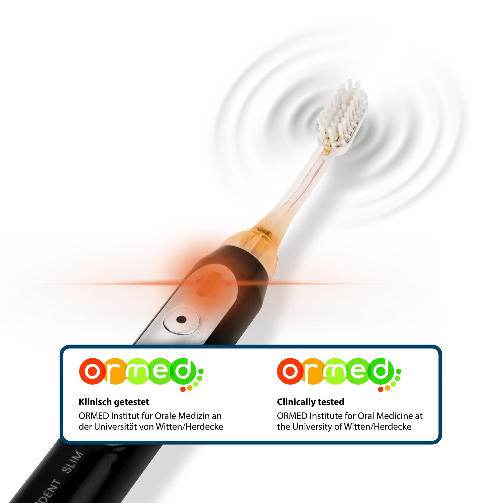Die Funktionalität unserer emmi-dent Ultraschallzahnbürsten wurde im Rahmen einer klinischen Studie von der Universität Witten/Herdecke getestet. Prof. Dr.h.c.P. Gängler, als Geschäftsführer des oralmedizinischen Institutes, bewertet den Test unserer emmi-dent Ultraschallzahnbürsten sinngemäß mit folgenden Worten: „Die Zahnreinigung mittels Ultraschalles und ohne Bürstenbewegung entfernt sicher und gründlich Plaque und Biofilm. Bürstenschäden an Zahnhälsen, Zahnfleisch und Zähen lassen sich dank dieser Technologie verhindern. Zahnbürste, die sich besonders für Menschen mit empfindlichen Zähnen eignet. Die abrasionsfreie Anwendung sorgt dafür, dass Zahnfleischverletzungen aktiv vermieden werden können. Zudem wird bei regelmäßiger Anwendung der Rückgang von Gingivitis aktiv gefördert.“
