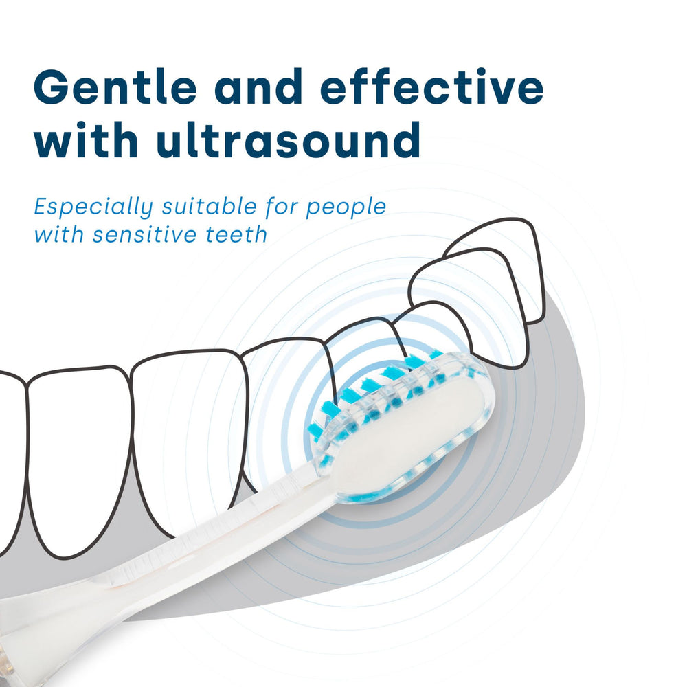 This ultrasonic brush head should be replaced after 3 months of use at the latest. After this period, the ability of the bristles to transmit 100% of the ultrasound weakens and optimal tooth cleaning and oral hygiene is no longer guaranteed.