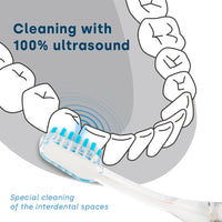 - Thorough cleaning: Ultrasonic technology removes plaque and bacteria without mechanical brushing.
