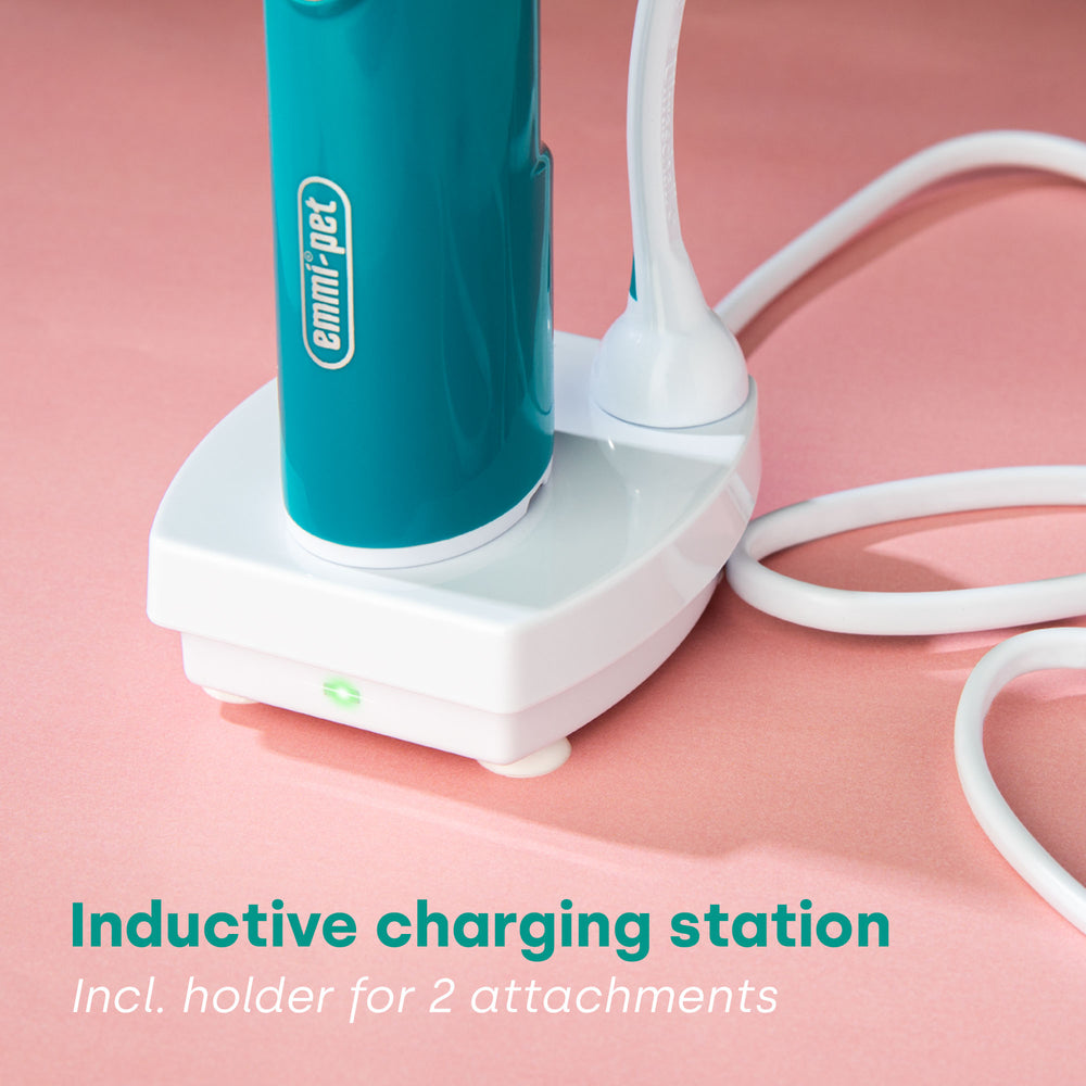 The emmi-pet basic set is suitable for all pet owners who are personally concerned about the health and care of their four-legged friend. This set contains everything you need for the painless, gentle and thorough removal of plaque and bacteria from your pet.