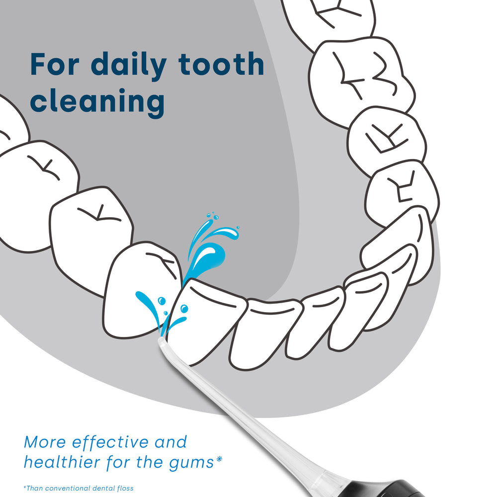 Suitable for daily tooth cleaning, more effective than dental floss, healthier for gums. Ultra-fine pulse water column, penetrates deep into the gaps between teeth, grooves and lower gums. Cleans the tooth surface and removes food residue.