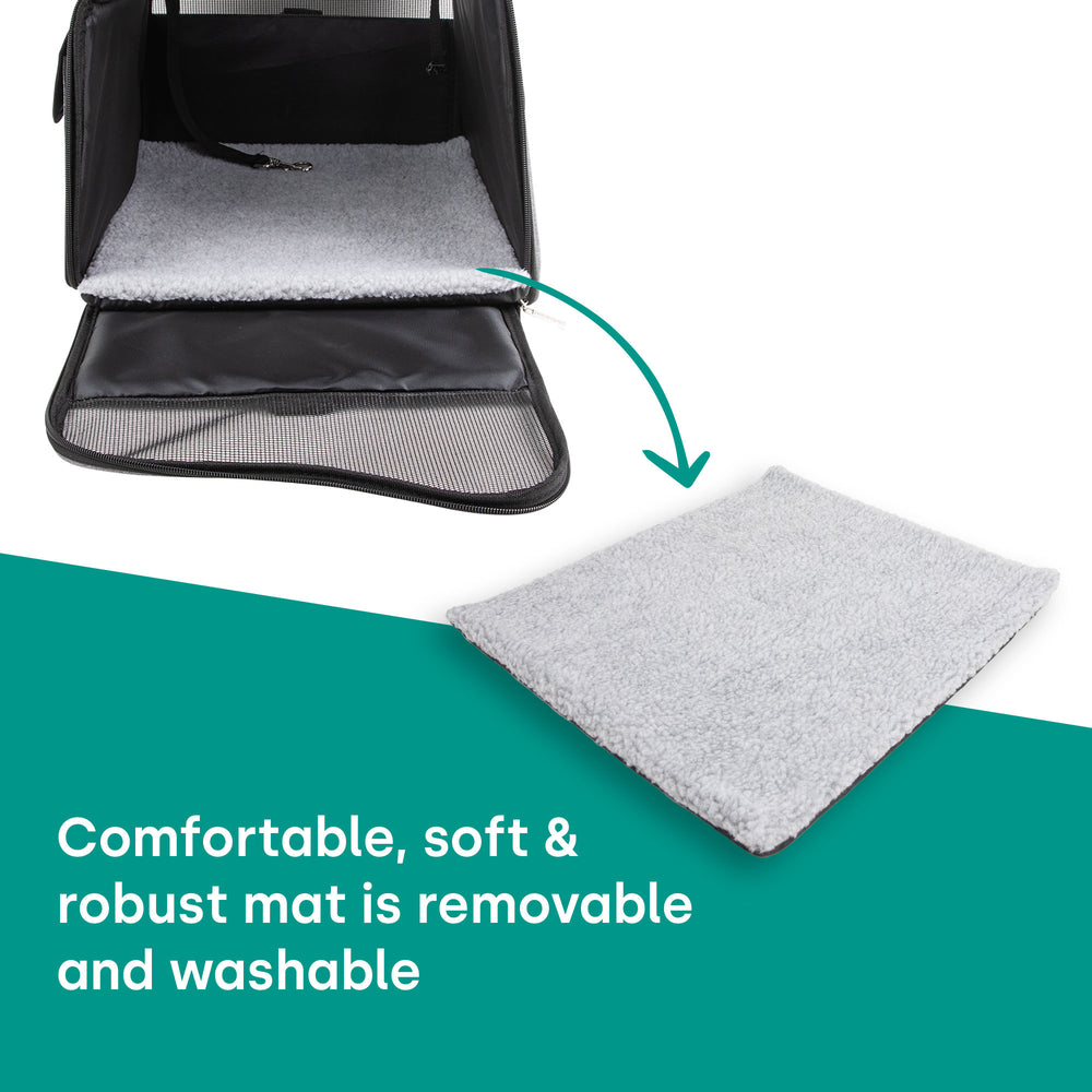 No matter whether you are travelling with your four-legged friend by car or plane or going on an excursion - the emmi-pet Travel Bag Large offers you a safe and comfortable solution to always have your four-legged companion with you. Invest in the safety and well-being of your pet with this high-quality travel transport box.