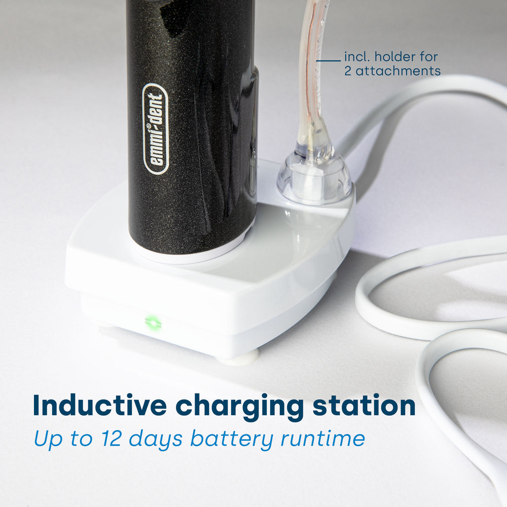 The emmi-dent Metallic has an optimal battery life. With regular use of 2-3 times a day, the Metallic can last up to 12 days before it needs to be recharged. This extended battery life (lithium-ion) offers convenience and uninterrupted use and eliminates the need for frequent charging.