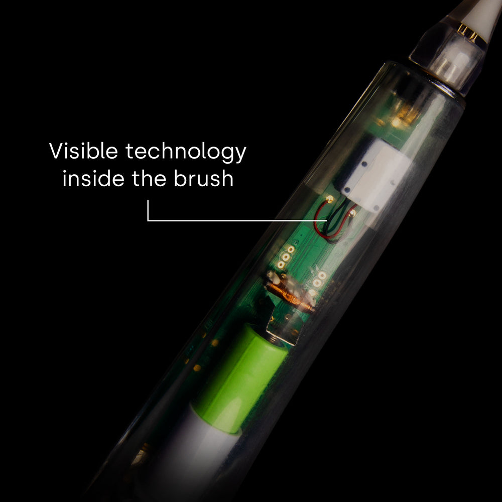 Ultrasonic toothbrushes have revolutionized the way we brush our teeth since 2013. Compared to traditional manual or electric toothbrushes, they offer the decisive advantage that they work with almost no direct contact and no mechanical movements. This technology enables a particularly gentle, yet extremely thorough cleaning that protects the tooth enamel while effectively removing plaque and bacteria. Ultrasonic brushing thus ensures reliable oral care without friction.