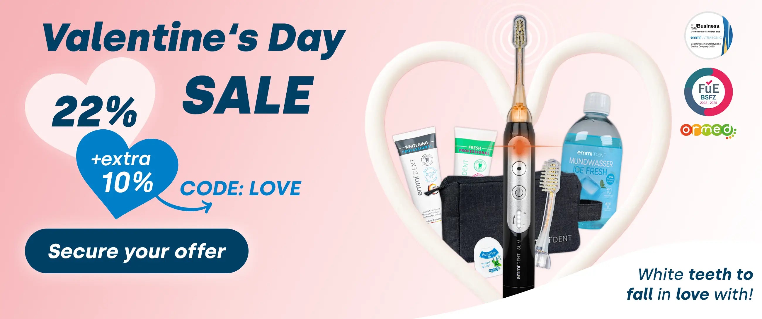 Nuestros cepillos de dientes ultrasónicos emmi-dent son básicamente adecuados para todas las personas que quieran limpiar sus dientes con suavidad y, sobre todo, eliminar el riesgo de "raspar" el esmalte dental. Especialmente indicado para personas con encías sensibles, gingivitis y periodontitis, portadores de aparatos de ortodoncia, implantes y puentes. Ofrecemos cepillos de dientes ultrasónicos para todas las edades. Nuestra gama incluye varios cabezales de cepillo , incluido un accesorio para niños y personas con bocas pequeñas. Esto hace que el cuidado dental sea un juego de niños para los más pequeños.