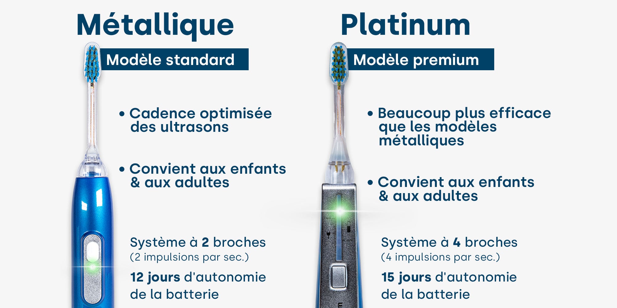 Quelle est la différence entre les brosses à dents à ultrasons Metallic, Platinum et Go ?