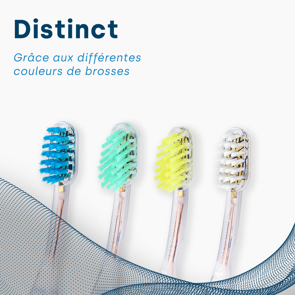 Ces têtes de brosse doivent être remplacées au plus tard après 3 mois d'utilisation. Après cette période, la capacité des poils à transmettre 100 % des ultrasons s’affaiblit et un nettoyage optimal des dents et une hygiène bucco-dentaire ne sont plus garantis.