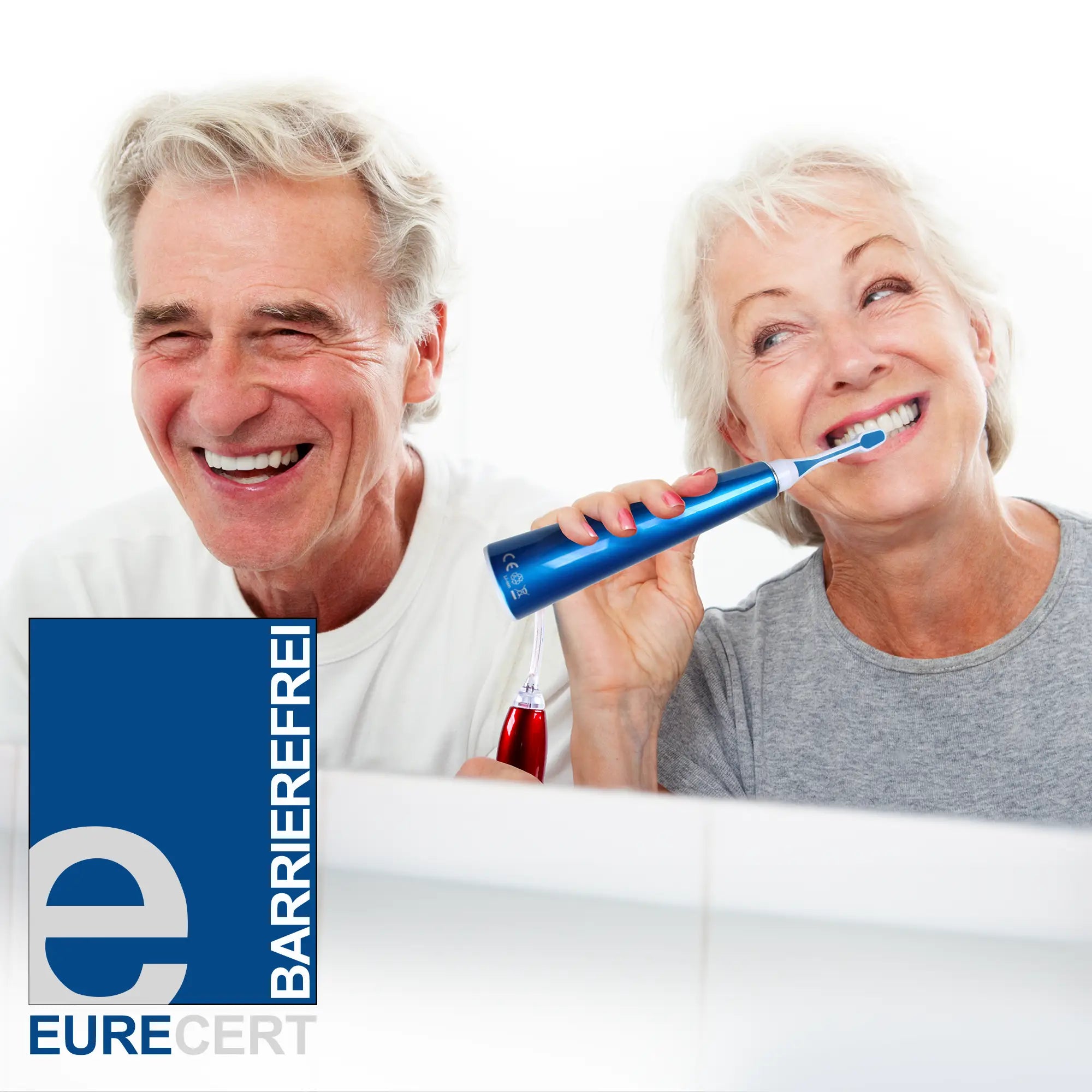 Les brosses à dents fonctionnant aux ultrasons révolutionnent le brossage des dents depuis 2013. L'avantage décisif par rapport aux brosses à dents manuelles classiques ou aux brosses à dents électriques est que les brosses à dents à ultrasons fonctionnent presque sans contact et sans mouvements mécaniques. Cela rend le nettoyage particulièrement doux et pourtant fiable et approfondi.