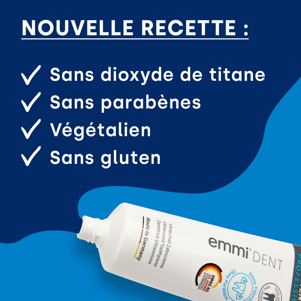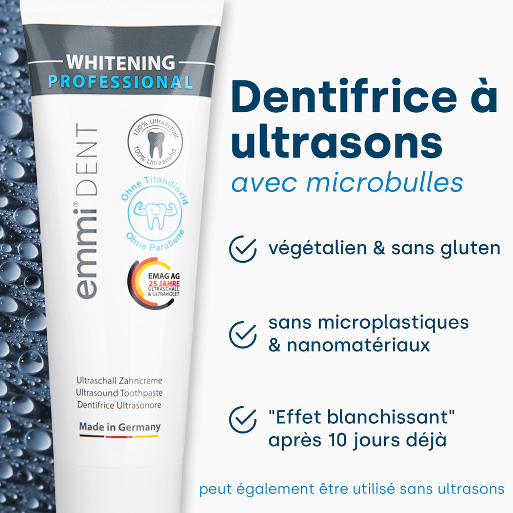 N'attendez plus et donnez vie à votre sourire radieux ! Commandez maintenant le dentifrice blanchissant à ultrasons emmi-dent et découvrez une nouvelle dimension dans les soins dentaires.