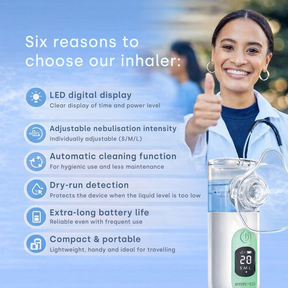 Dispositivo per inalazione emmi-Med: inalazione silenziosa, efficace e mobile