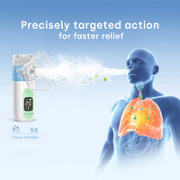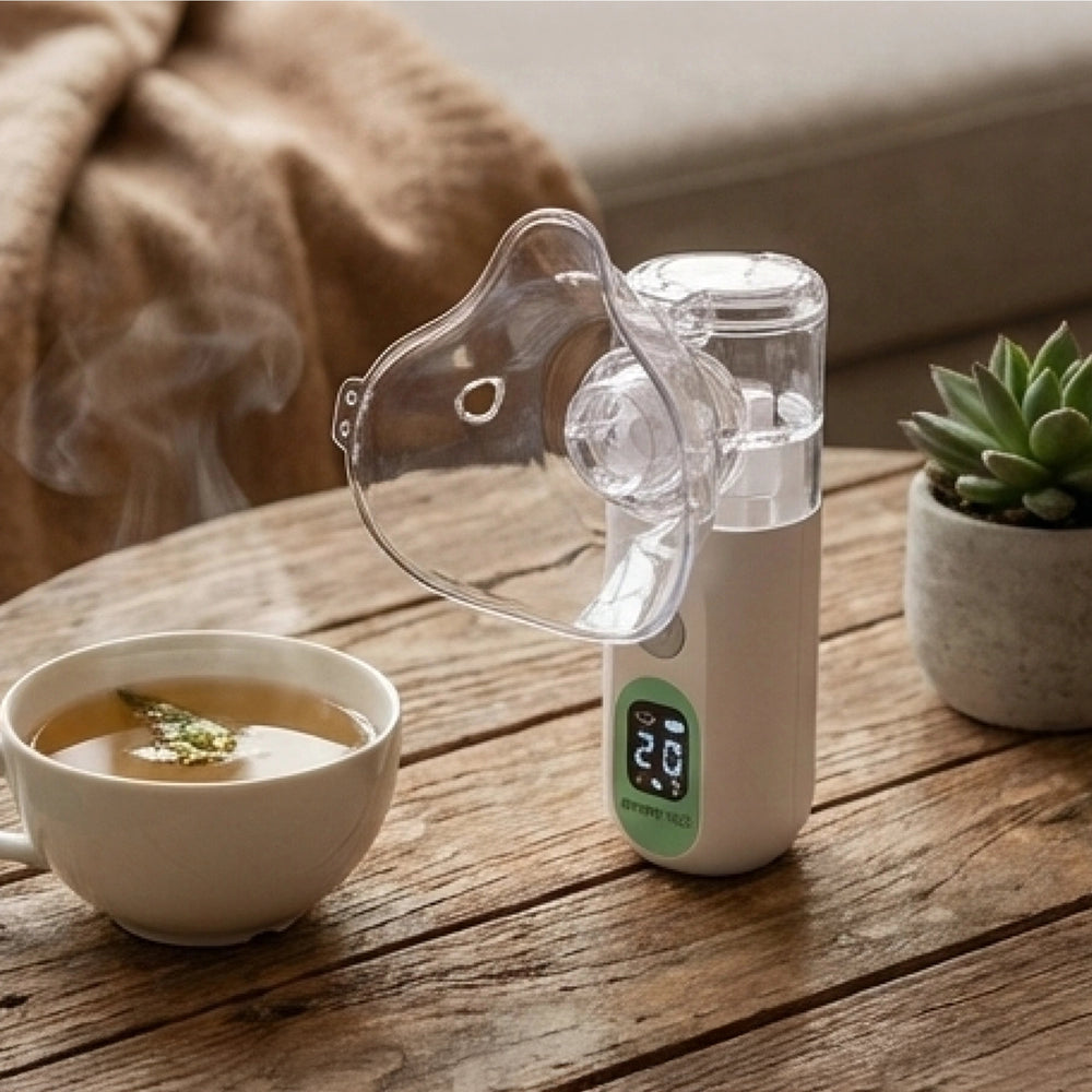 Il dispositivo per inalazione è compatto, leggero (circa 0,2 kg) e ricaricabile: perfetto per la casa, i viaggi o gli spostamenti. Il display super LCD di facile lettura mostra chiaramente lo stato operativo.