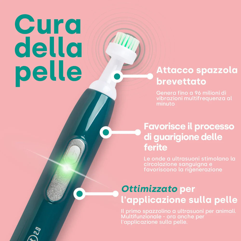 Migliorando la temporizzazione degli ultrasuoni, il Il dispositivo per la cura a ultrasuoni emmi-pet di seconda generazione è molto più efficace nel trattamento della pelle e dei denti. Ciò garantisce un risultato di pulizia ancora migliore rispetto al suo predecessore di prima generazione .