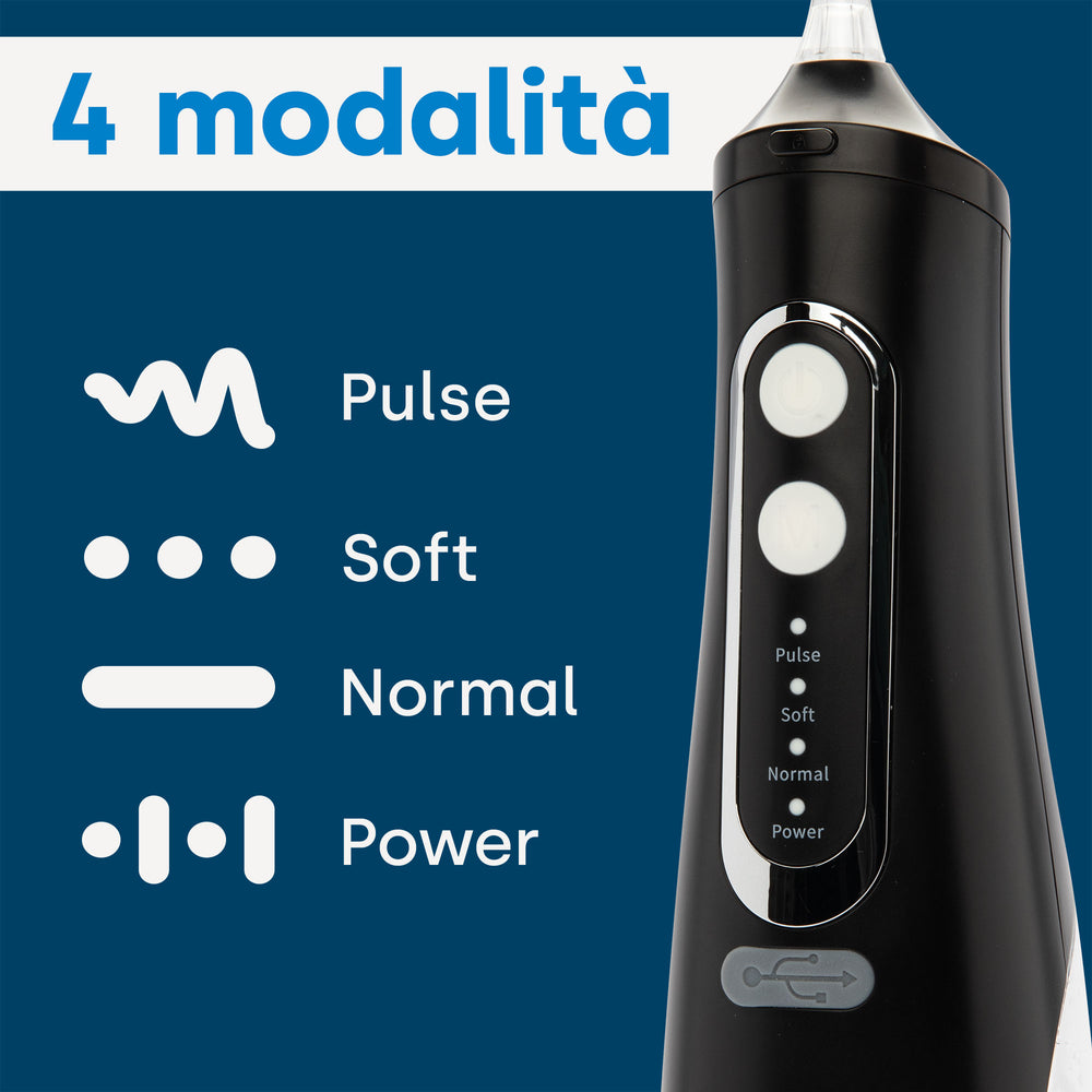 Pulsata, delicata, normale e forte: scegli la pressione dell'acqua più adatta ai tuoi denti e alle tue gengive. La modalità Normale fornisce un getto d'acqua efficiente per lo sciacquo quotidiano dei denti al mattino e alla sera. La modalità soft garantisce una pulizia delicata ma efficace.