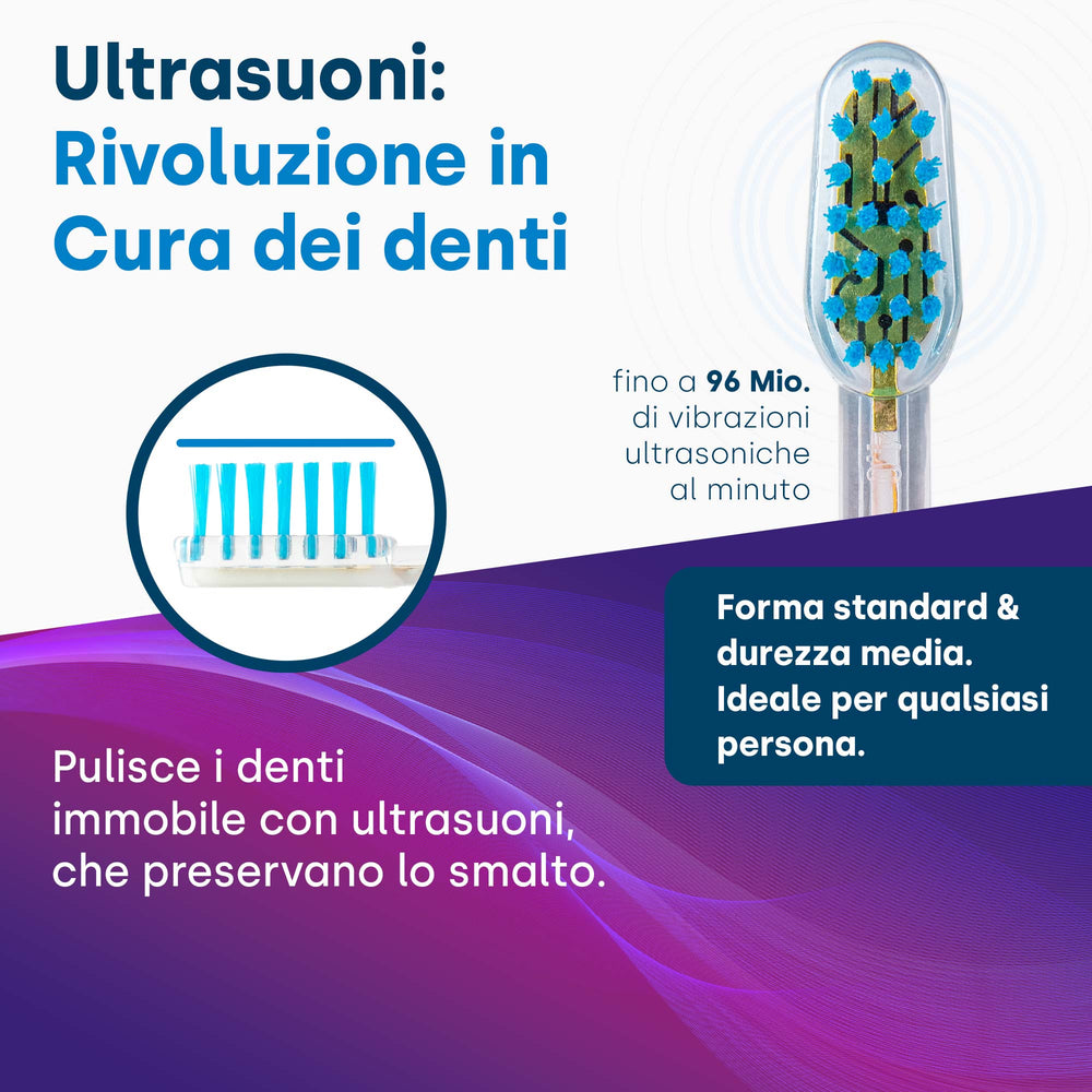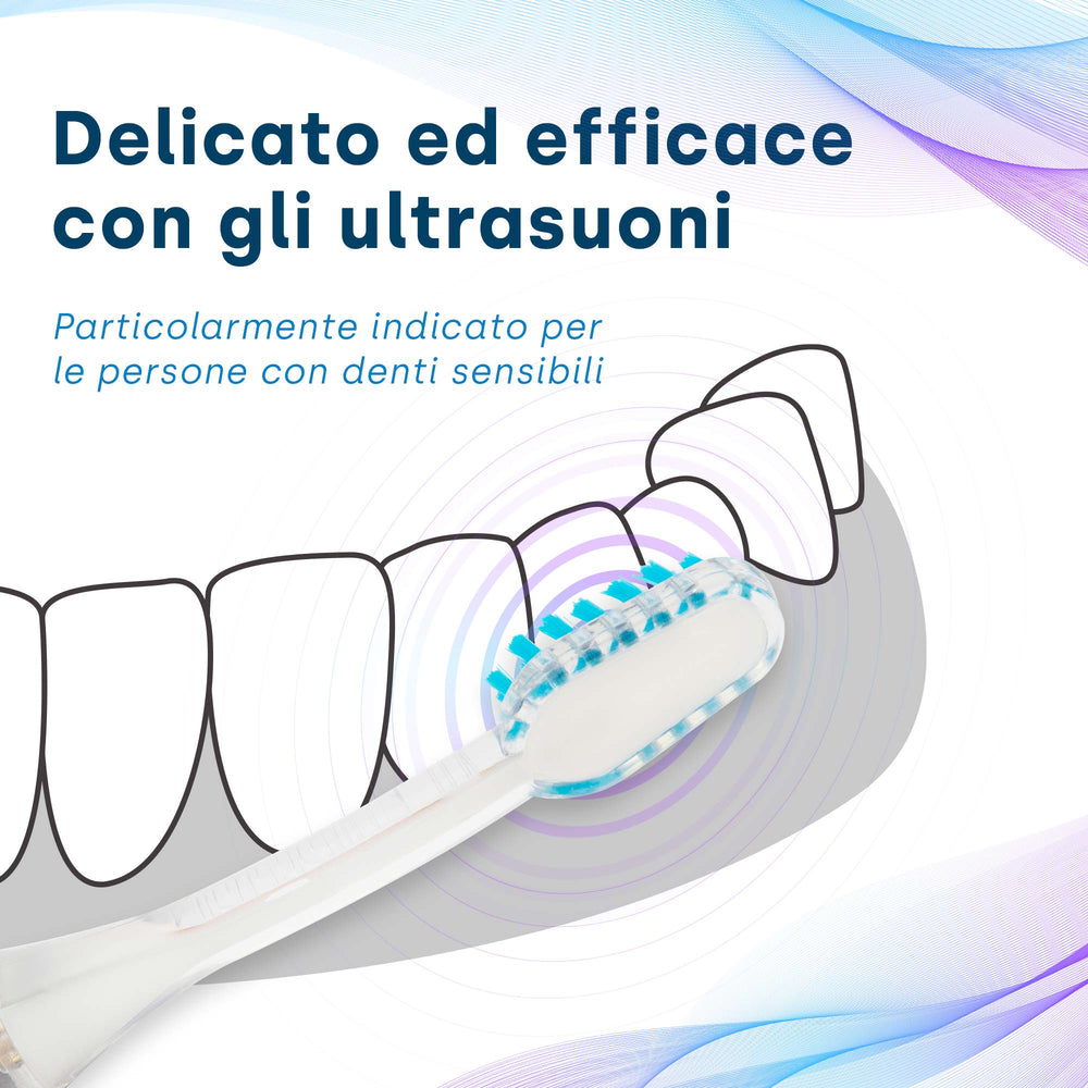 - Innovativa trasmissione ultrasonica: fino a 96 milioni di vibrazioni al minuto per una pulizia profonda, ideale per le aree difficili da raggiungere.