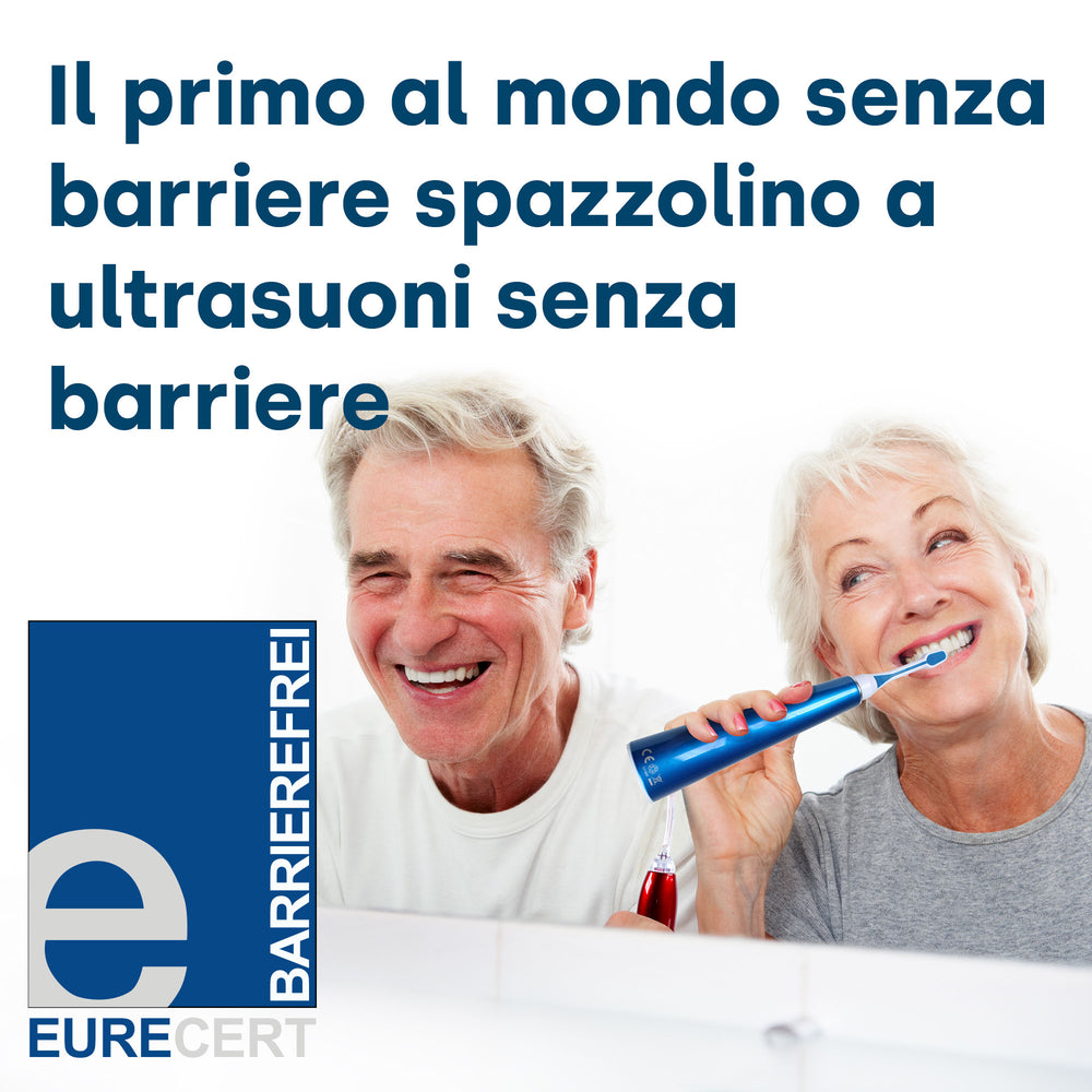 Dal 2013 gli spazzolini che funzionano con gli ultrasuoni stanno rivoluzionando il modo di lavarsi i denti. Il vantaggio decisivo rispetto agli spazzolini manuali classici o a quelli elettrici è che gli spazzolini ad ultrasuoni funzionano quasi senza contatto e senza movimenti meccanici. Ciò rende la pulizia particolarmente delicata e tuttavia affidabile e accurata.