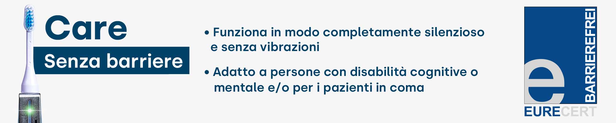 La salute inizia dalla bocca. Con la nostra emmi-dent Platinum Care stiamo rivoluzionando l'assistenza odontoiatrica quotidiana per le persone con disabilità o mobilità ridotta . Un'igiene orale che convince non solo per la sua completezza, ma anche per la sua semplicità, accessibilità e risparmio di tempo per le terze persone incaricate. Il nostro spazzolino ultrasonico Platinum Care rappresenta l'ultima tecnologia ultrasonica.