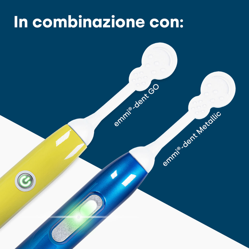 Si prega di notare che le testine ultrasoniche degli emmi-dent Metallic o Go possono essere utilizzate solo con questi modelli per la pulizia dei denti e l'igiene orale.